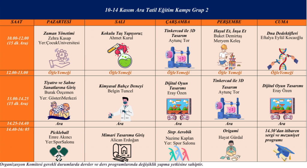 İlkokul Ara Tatil Kampı Programı