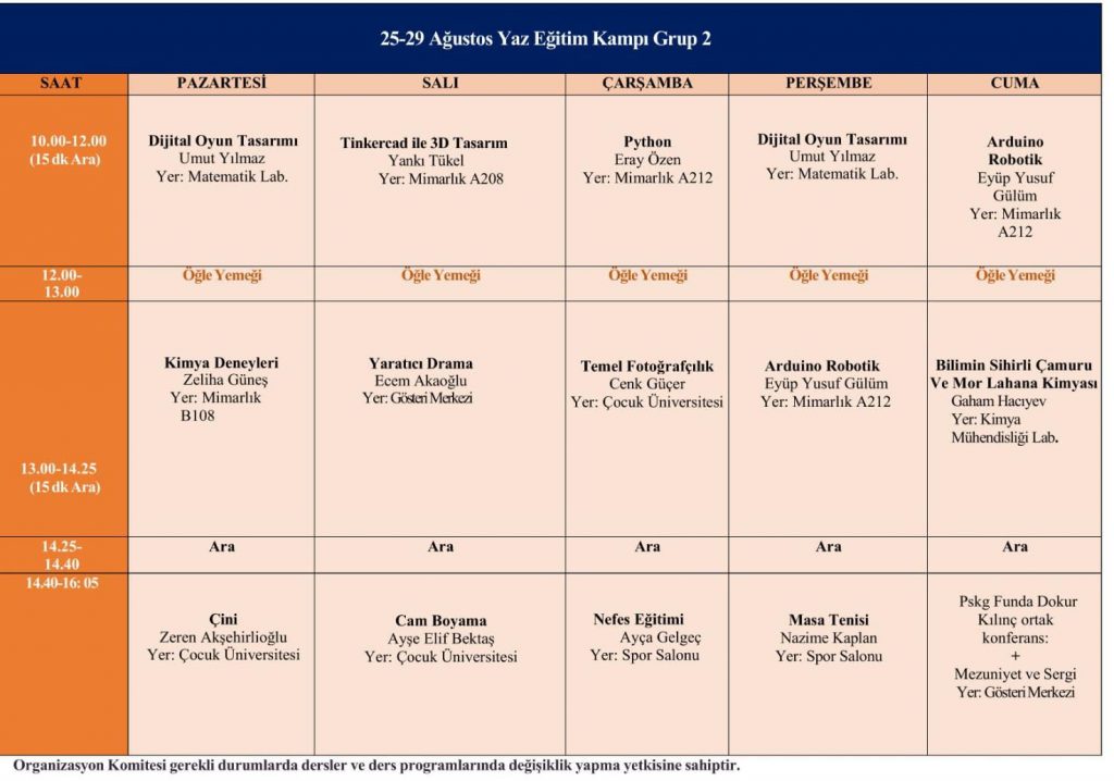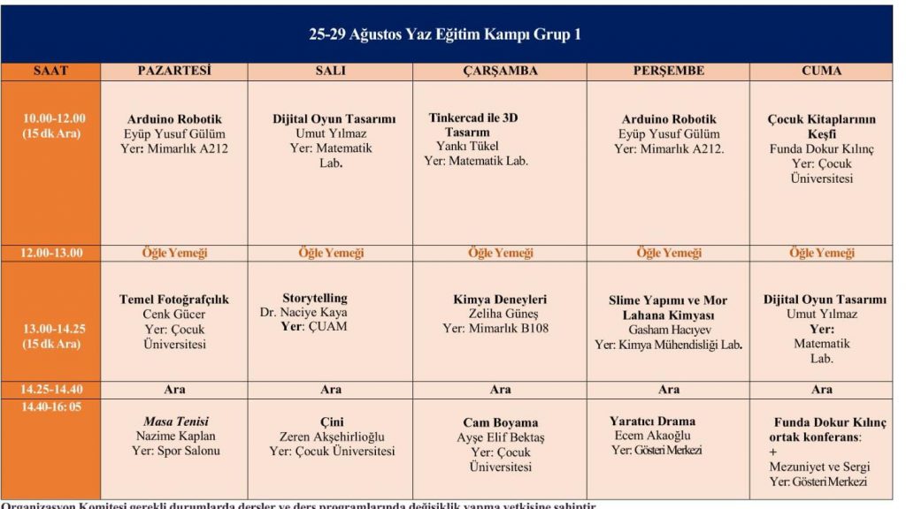 Ortaokul Grubu Yaz Kampı Programı